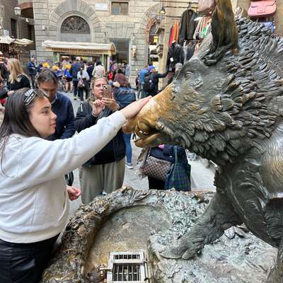 Stroll through the charming streets of the city center as you take in the stunning architecture and squares, including Piazza Santa Croce, Piazza del Duomo, and Piazza della Signoria, while your private guide shares fascinating stories and insights. You will cross the Ponte Vecchio, famous for its numerous jewelry stores and recognized as Florence's oldest bridge, and walk through Mercato Nuovo, where you can see the “Porcellino” (the little pig) and rub its nose for a stroke of luck.