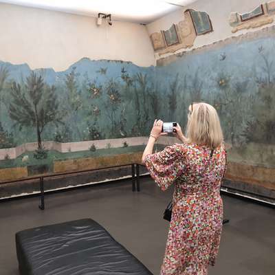 On the fourth floor, step into the richly decorated rooms of Empress Livia, the wife of Emperor Augustus. These rooms feature stunning frescoes, including a garden scene painted with extraordinary detail, showcasing a variety of plant species that once adorned the walls of her villa.